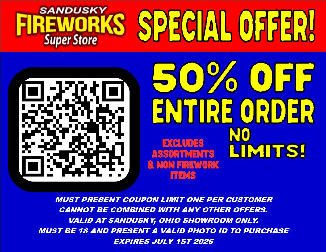Take advantage of this exclusive, Grand Re-Opening offer! Sign up for even deeper discounts right in your inbox, and remember, we always accept all other competitor's fireworks coupons. (coupon must be from a store in Ohio)